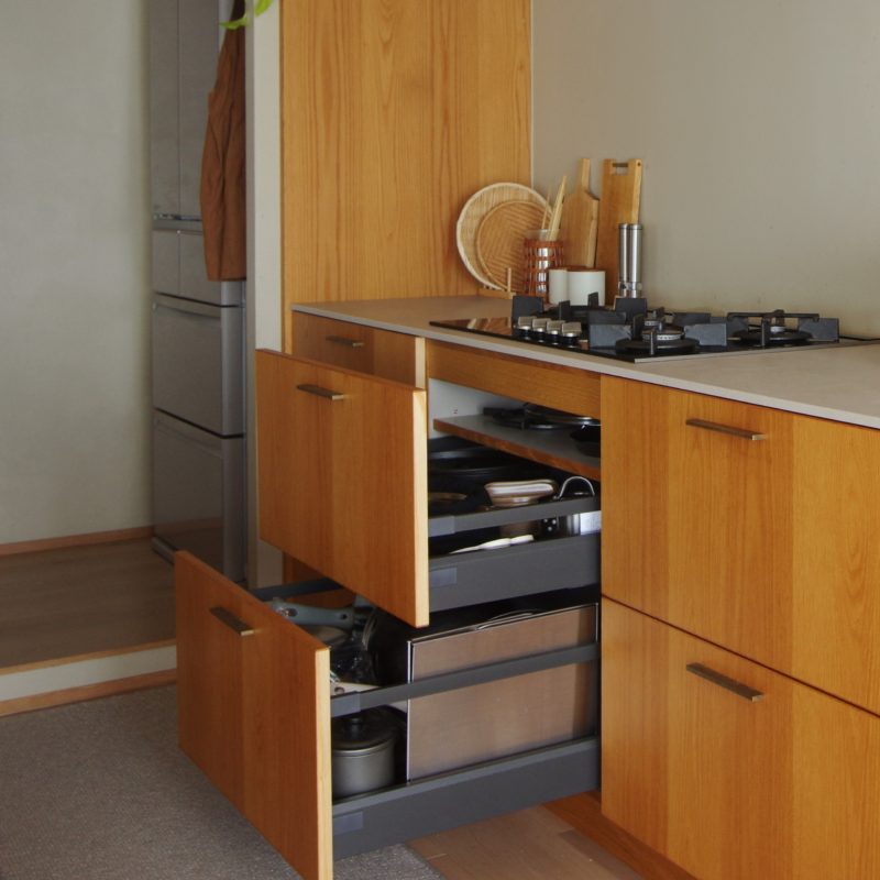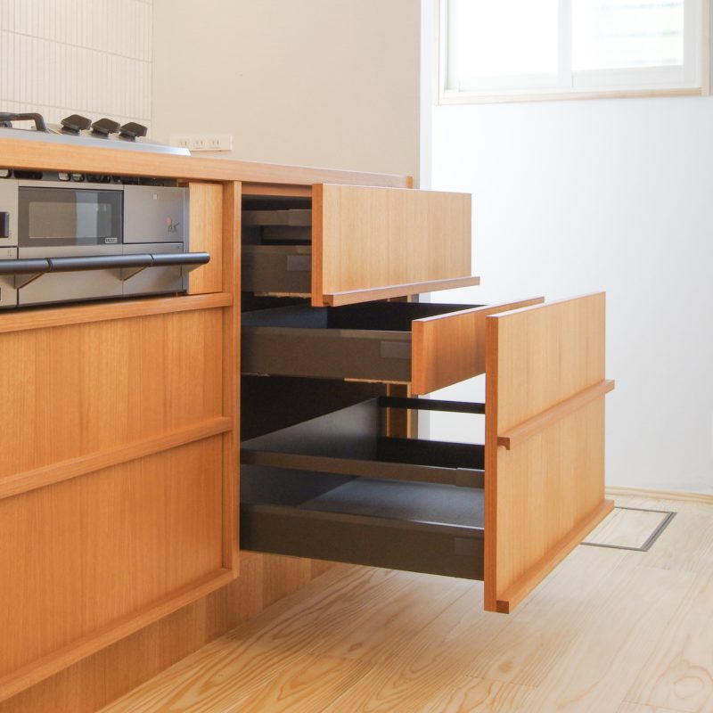 ORDER KITCHEN ARCHIVE 引き出しの種類 コンセントの配置 キッチンアイデア|収納 展示中の設備機器 キッチン・家具の仕様について キッチンの形・レイアウト 木材の種類|濃い色の木材4選 木材の種類|明るい木材4選